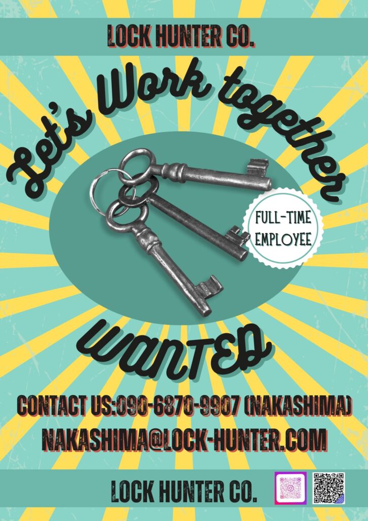 事業拡大につき人手が足りません💦💦どこの企業も求人は大変だと聞きますが、鍵業界は尚更大変です(;_:)
